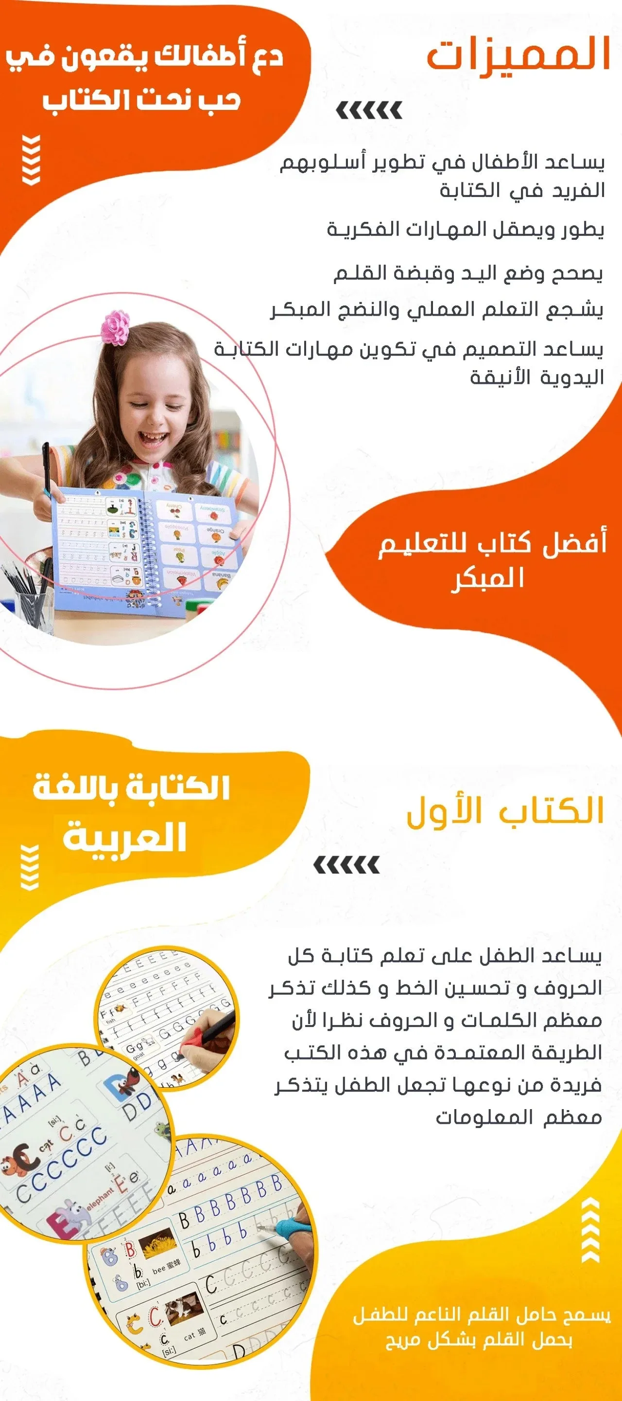 أربع 4 كتب تعليمية الأطفال + أقلام سحرية